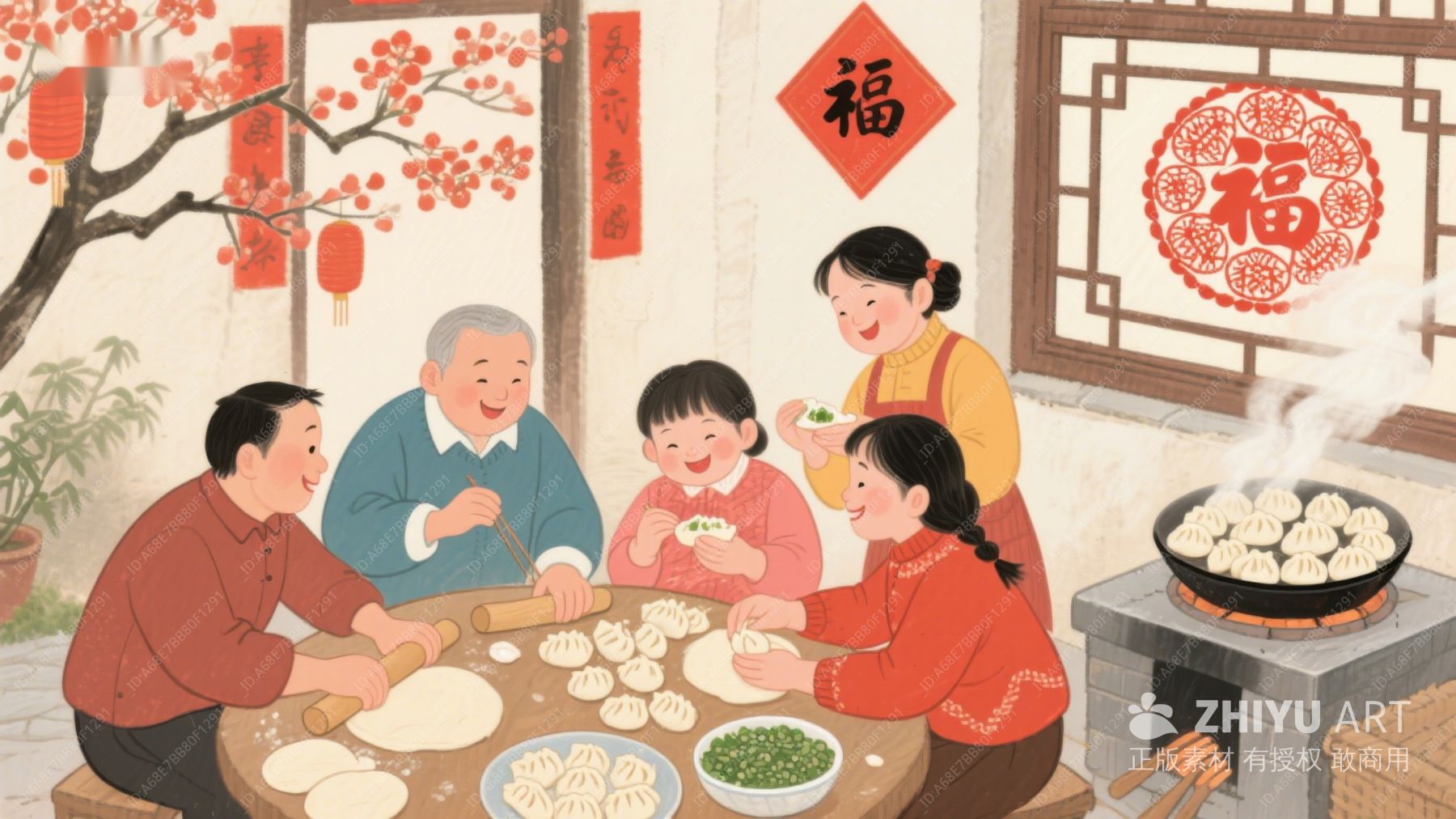 家庭围坐包饺子,共庆节日温馨时刻 550
