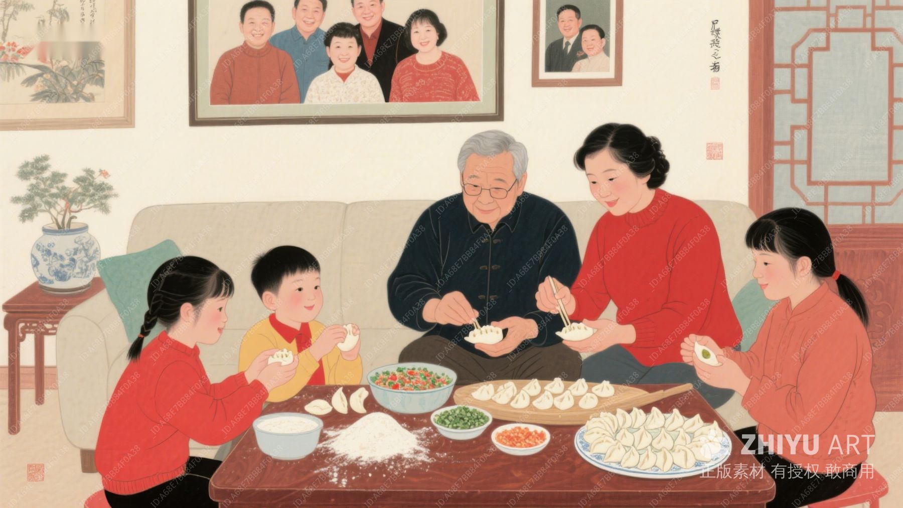 家庭围坐包饺子,共庆节日温馨时刻 550