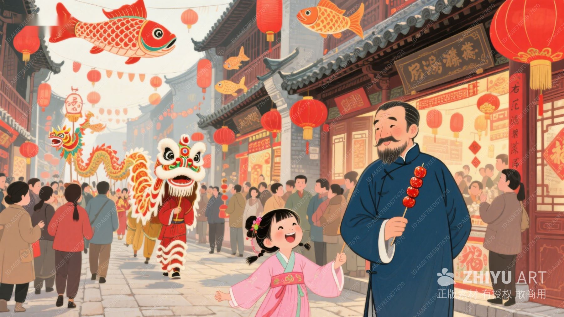 欢庆春节:舞龙表演与热闹街景 386