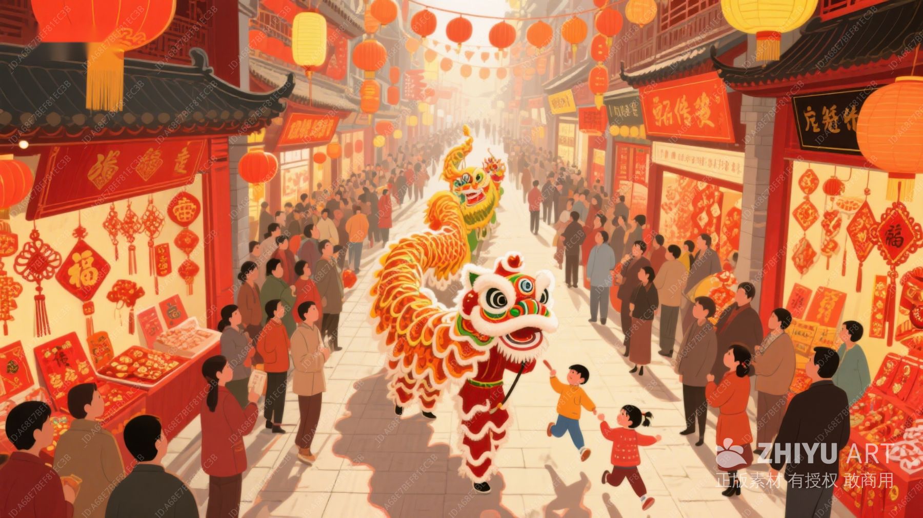 热闹春节街景与舞狮表演 764