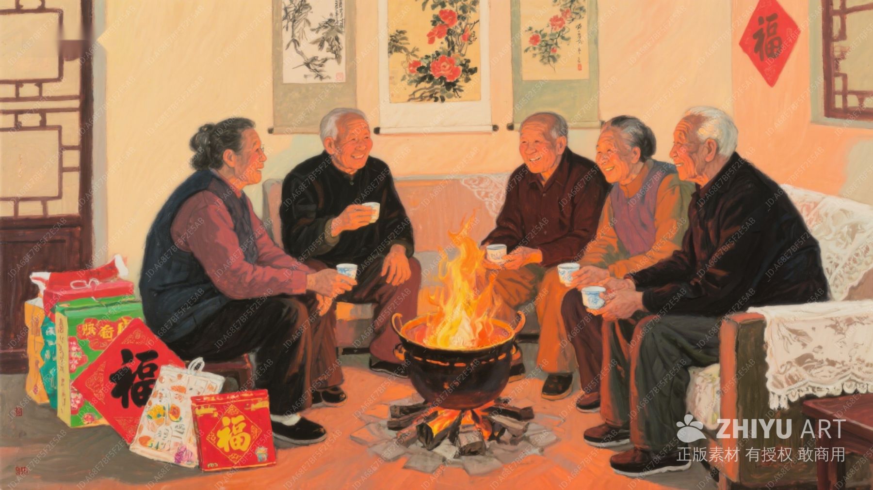 冬日暖室,老人围炉 19