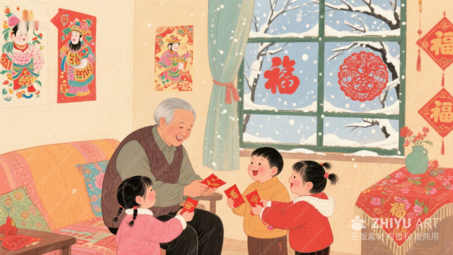 祖辈分发红包,孩童欢庆新年 1264