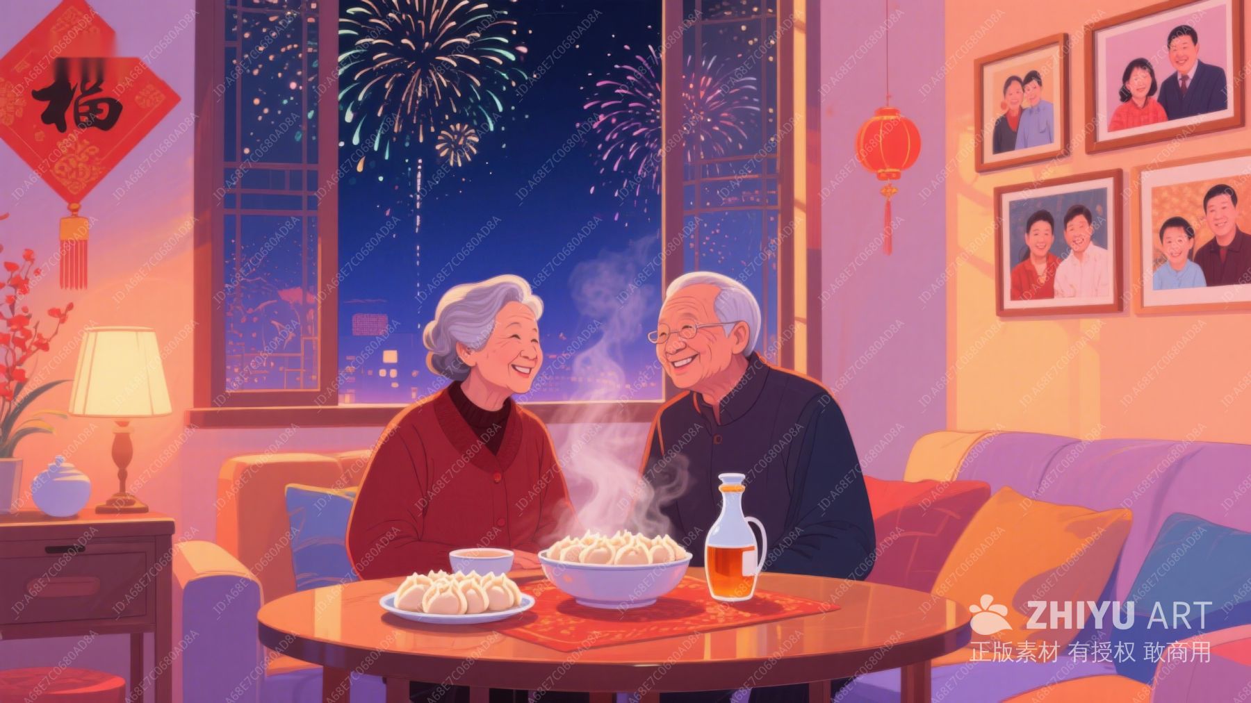 家庭共聚年夜饭,烟花绽放迎新春 445