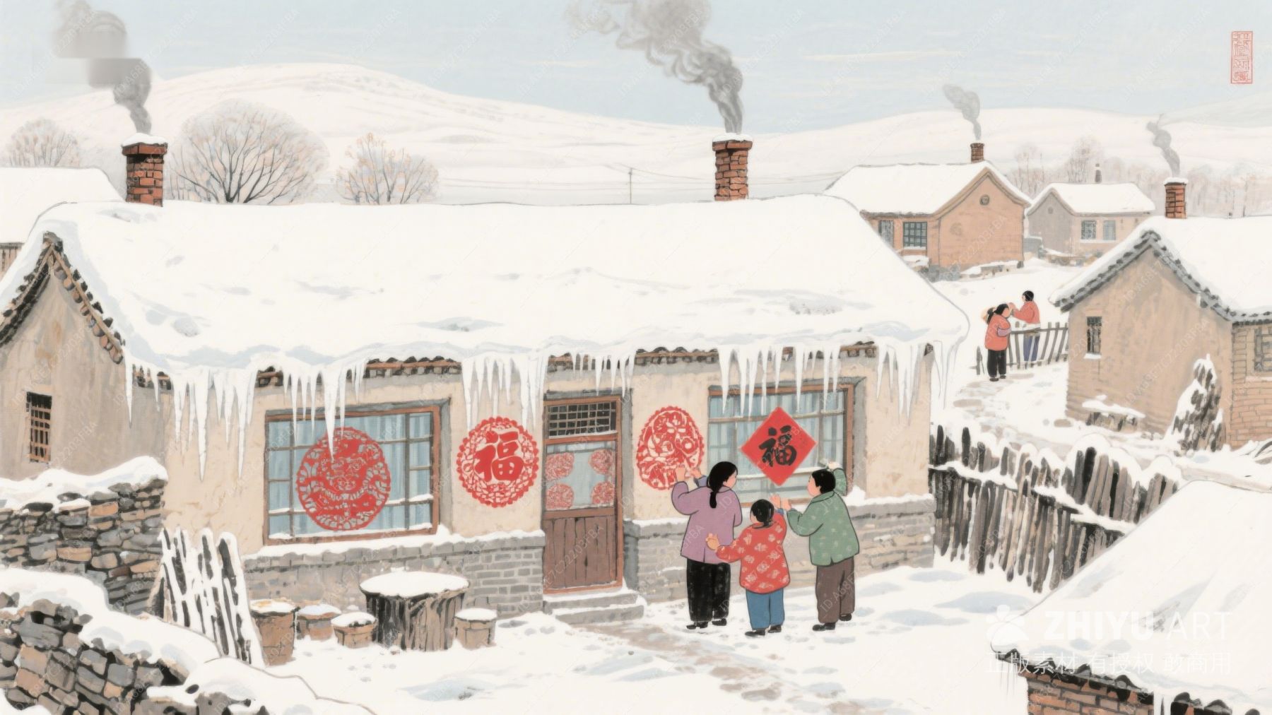 雪中村落,福字迎春 1089