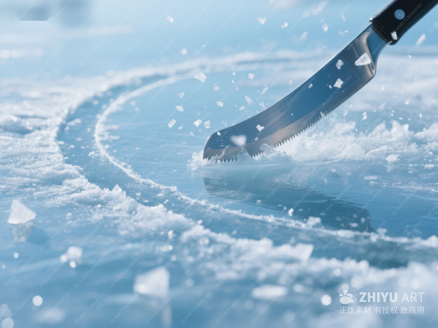 冰面切割瞬间,刀刃与冰晶飞溅 29