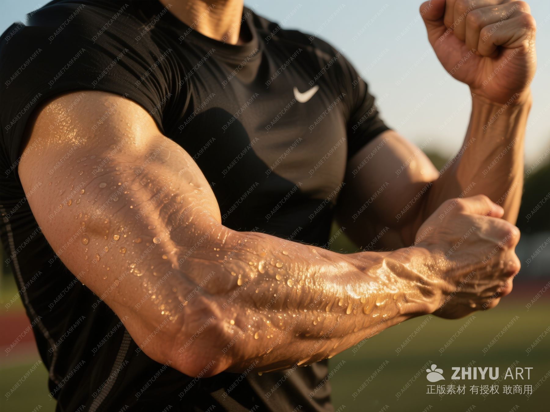 一名光头男子,穿着红色和蓝色的上衣,面部表情严肃地