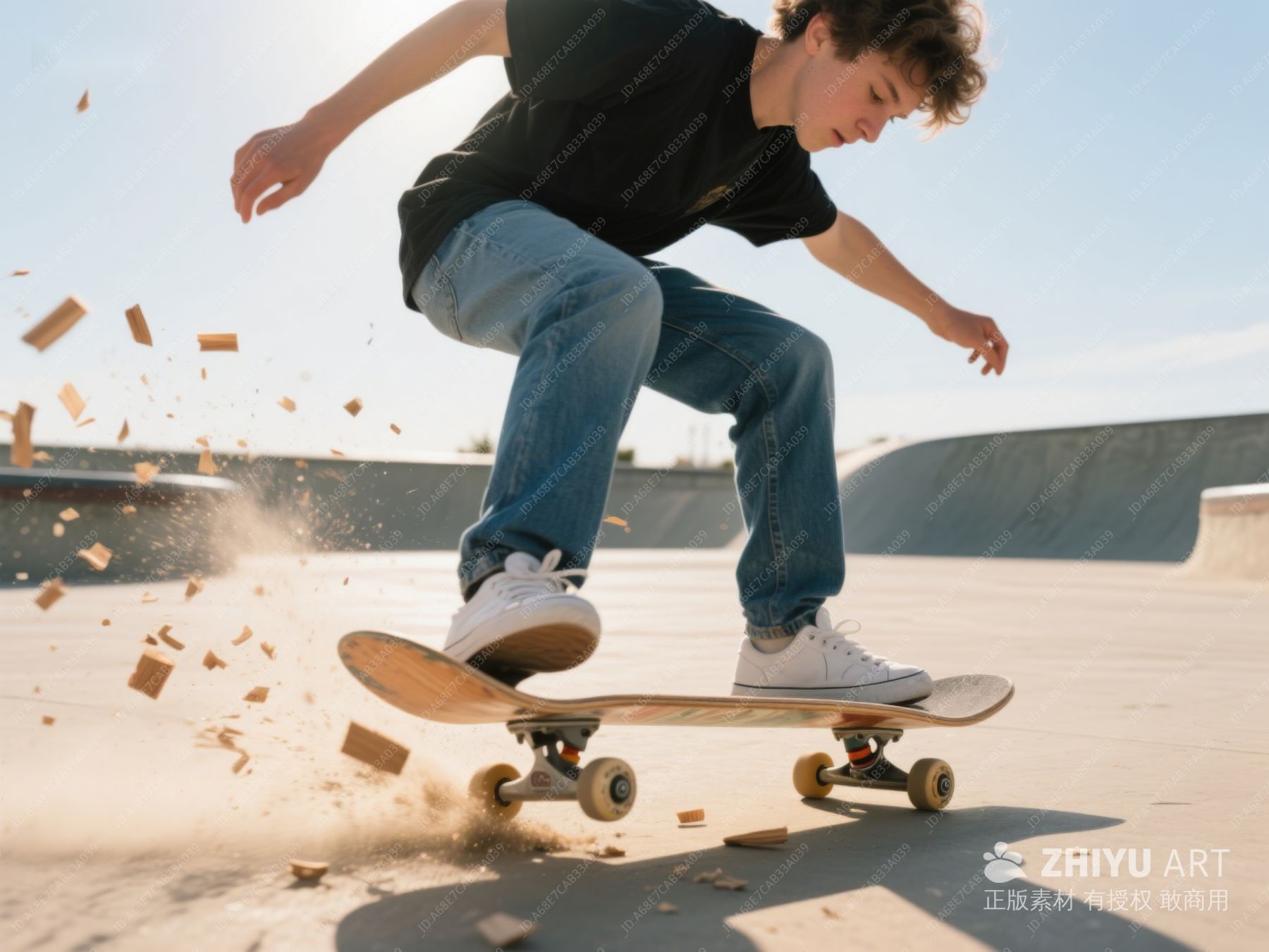 滑板少年空中飞跃,木块四散 84