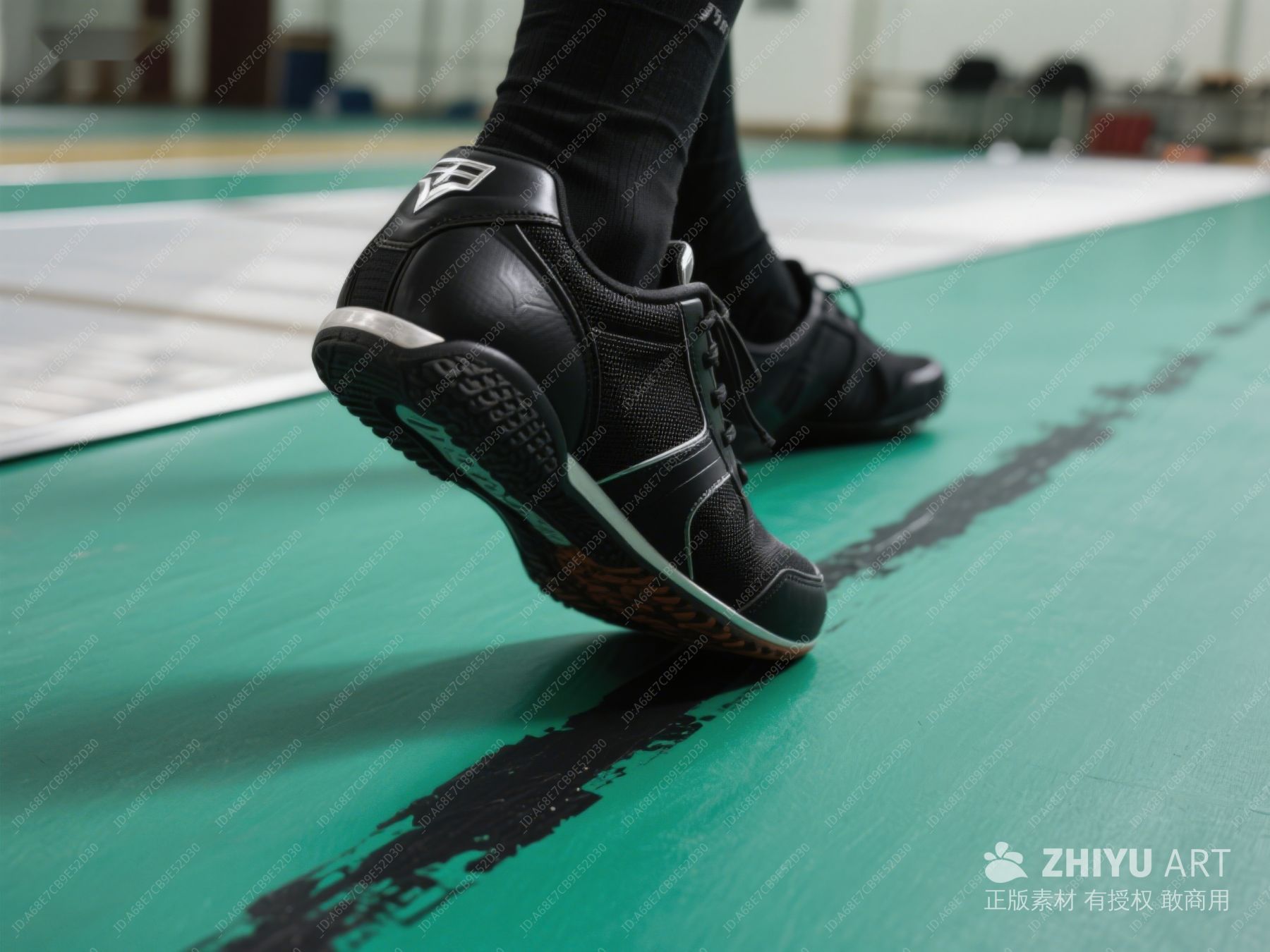 运动鞋踏在绿色跑道上 244