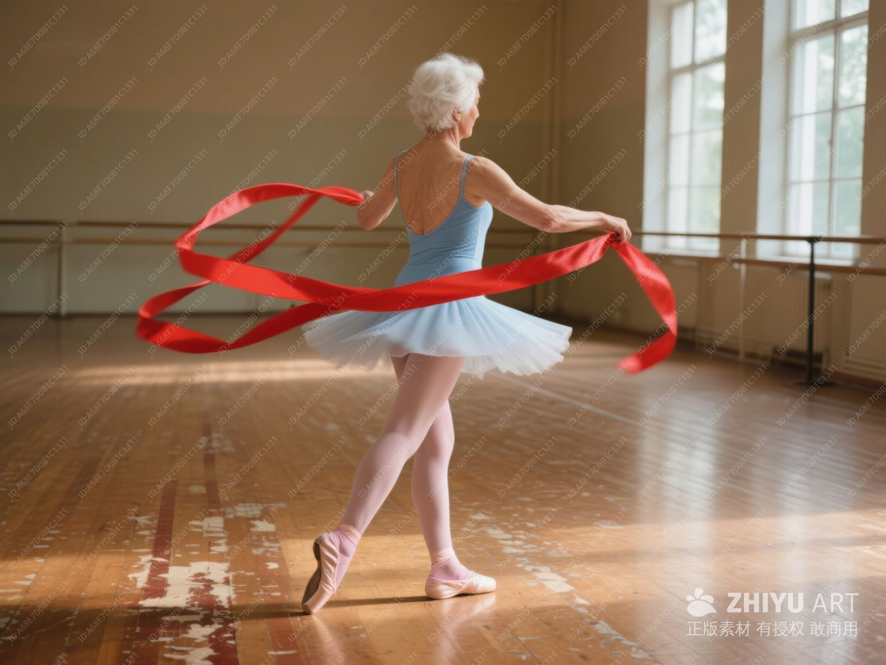 舞者挥动红绸,优雅芭蕾瞬间 817