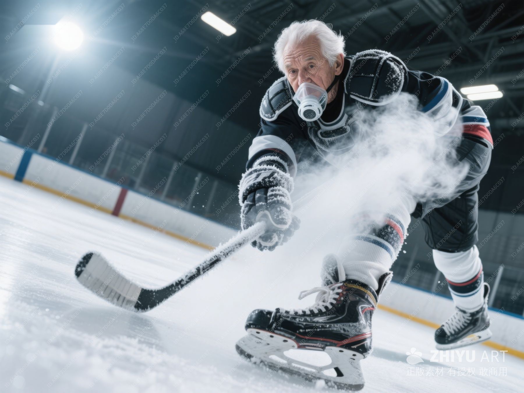 冰上疾驰的老年冰球运动员 33