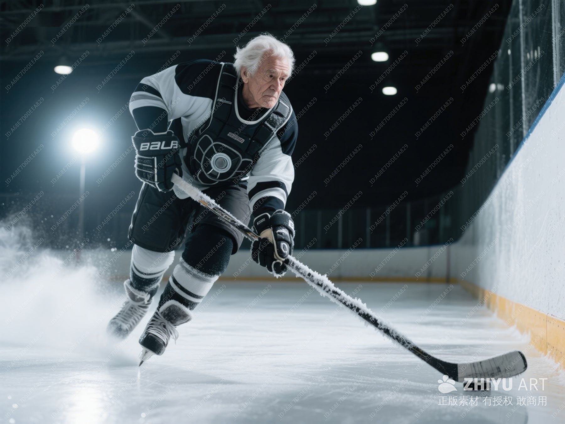 冰上疾驰的老年冰球运动员 33