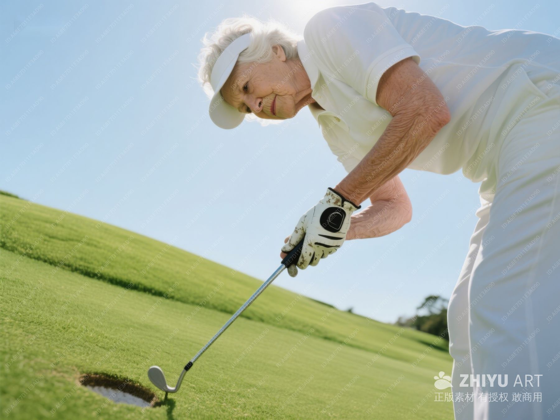 老年女性专注练习高尔夫推杆 301