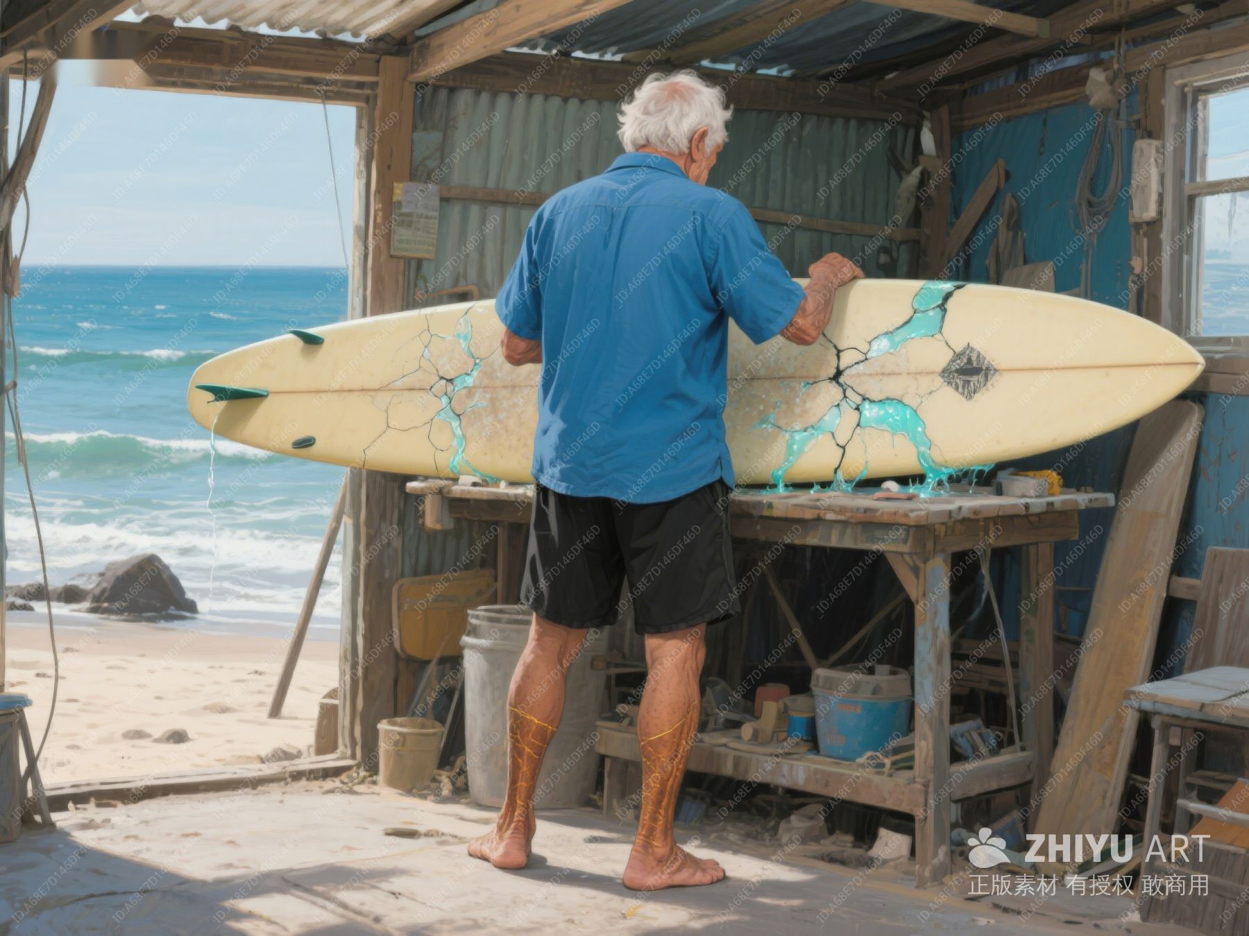 老者海边修理冲浪板 593