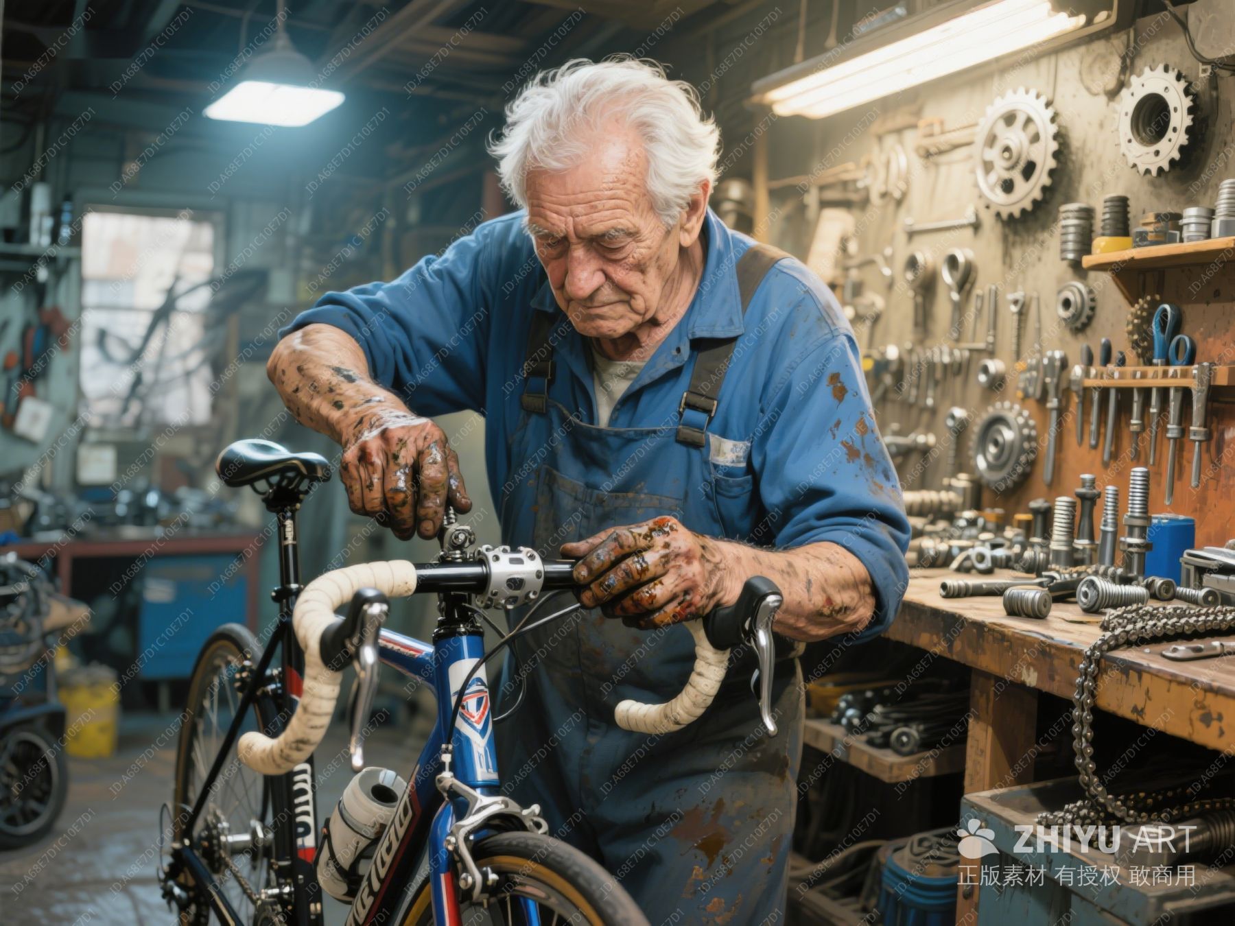 老人在车间修理自行车 488