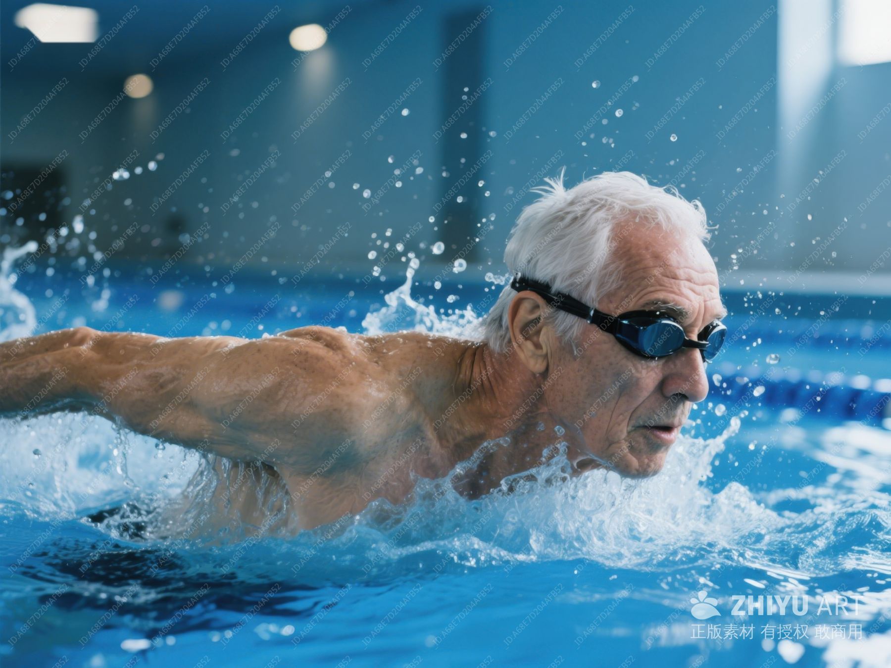 老年男子在泳池中自由泳 228