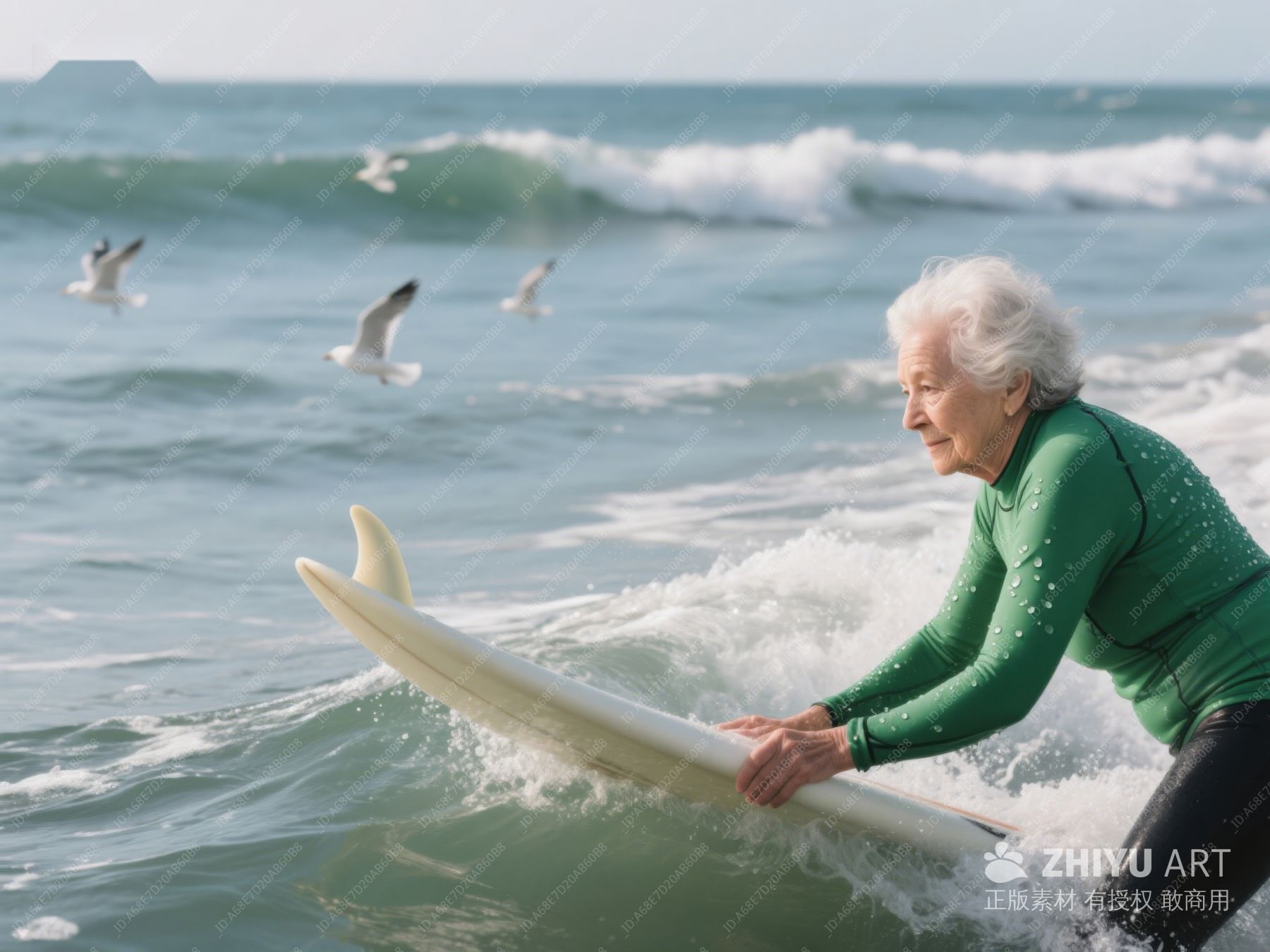 老年女性海边冲浪 232