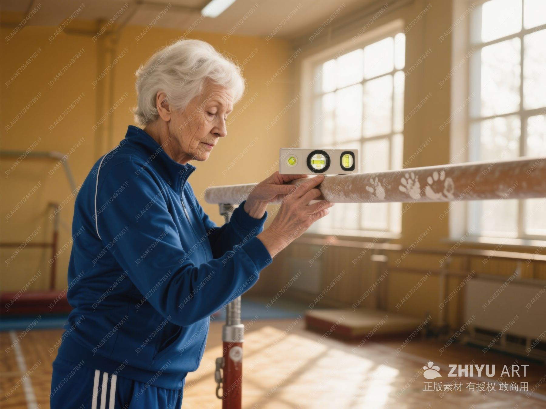 老年女性在体操馆调整平衡木 286
