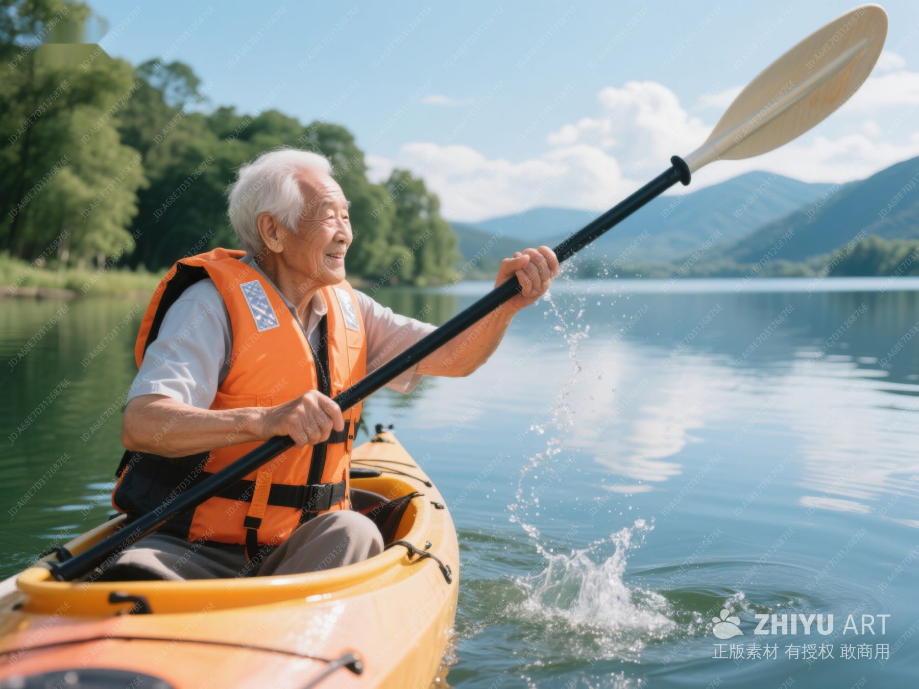 老人划桨独木舟,享受宁静湖光 406