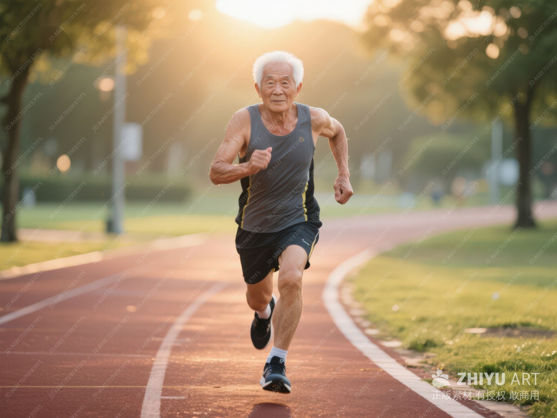 老人在公园跑道上跑步 499