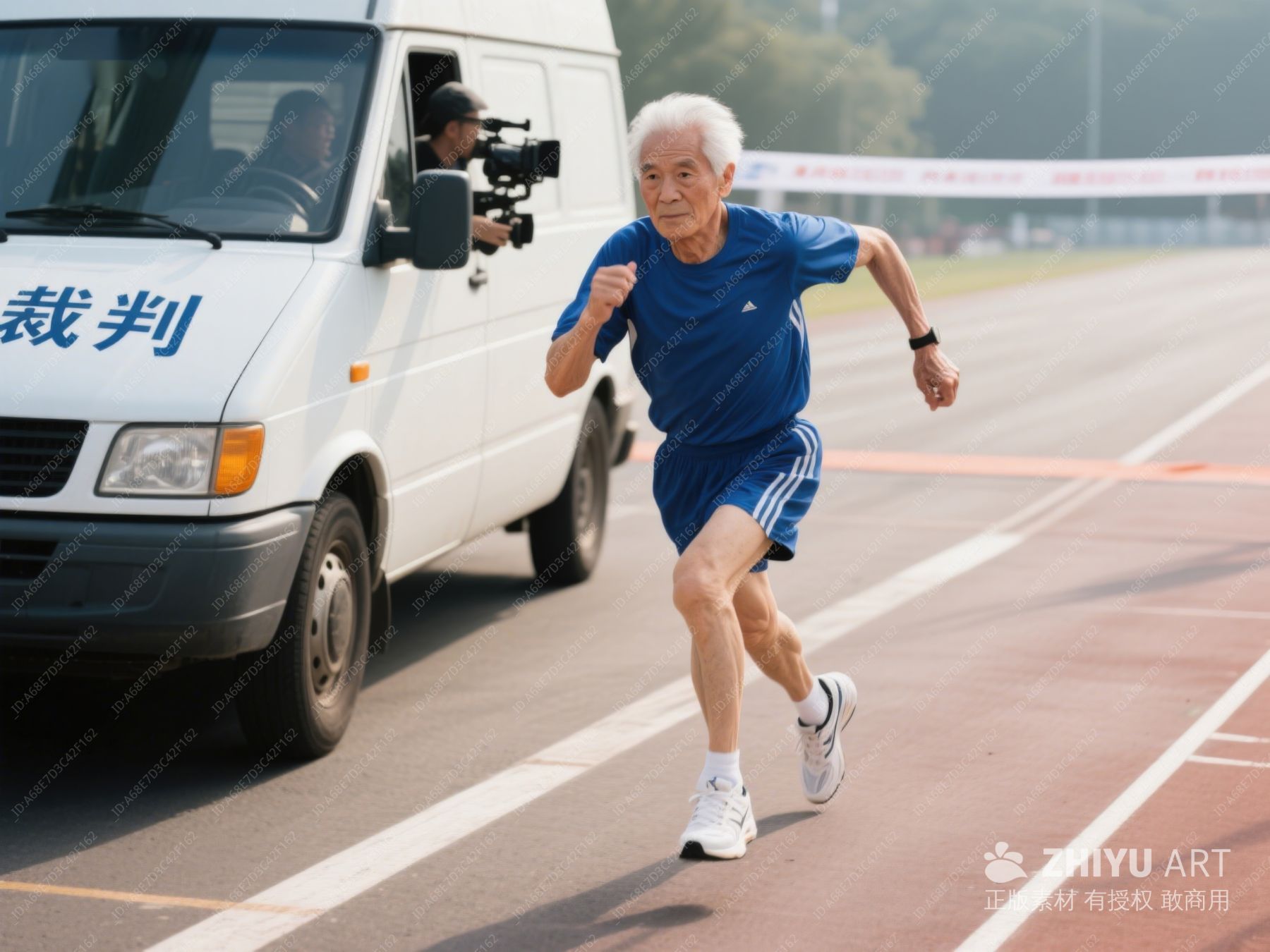 老人在赛道上奔跑,摄像车跟随拍摄 524