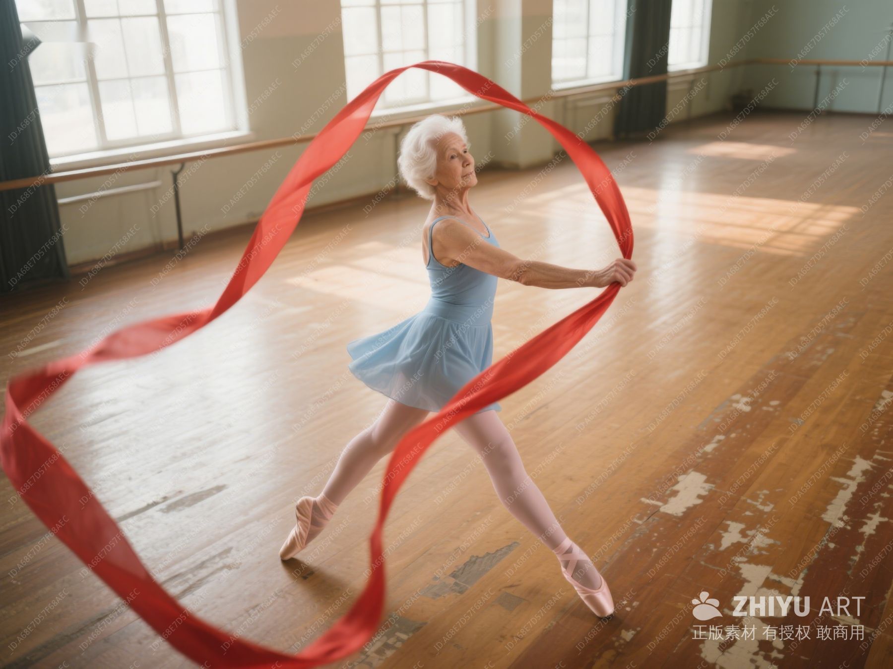 舞者挥动红绸,优雅芭蕾瞬间 817
