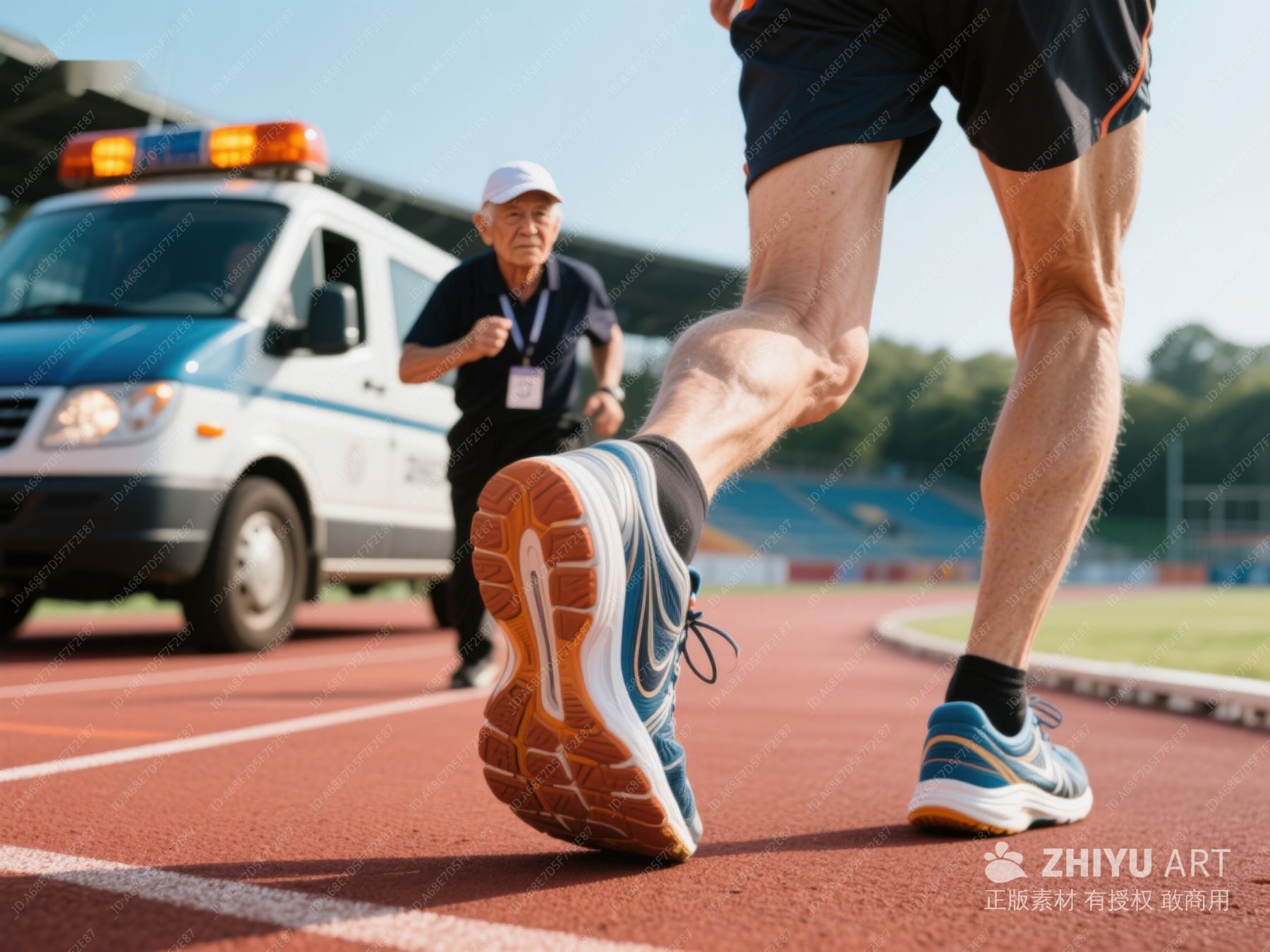 运动员在跑道上奔跑,医疗人员在旁待命 898