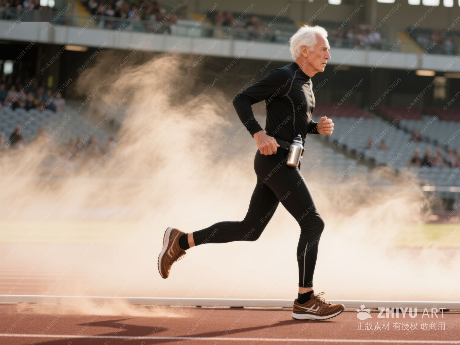 老年运动员在跑道上疾跑 366