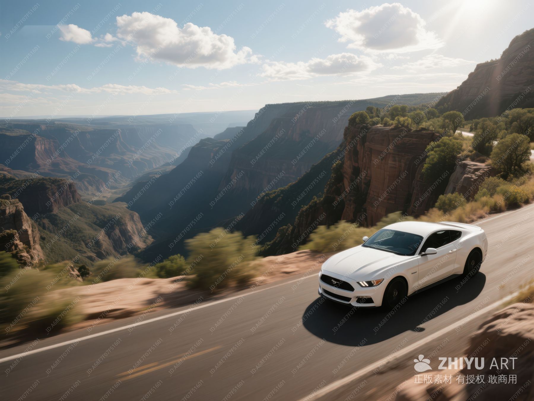 白色跑车驰骋峡谷公路 2