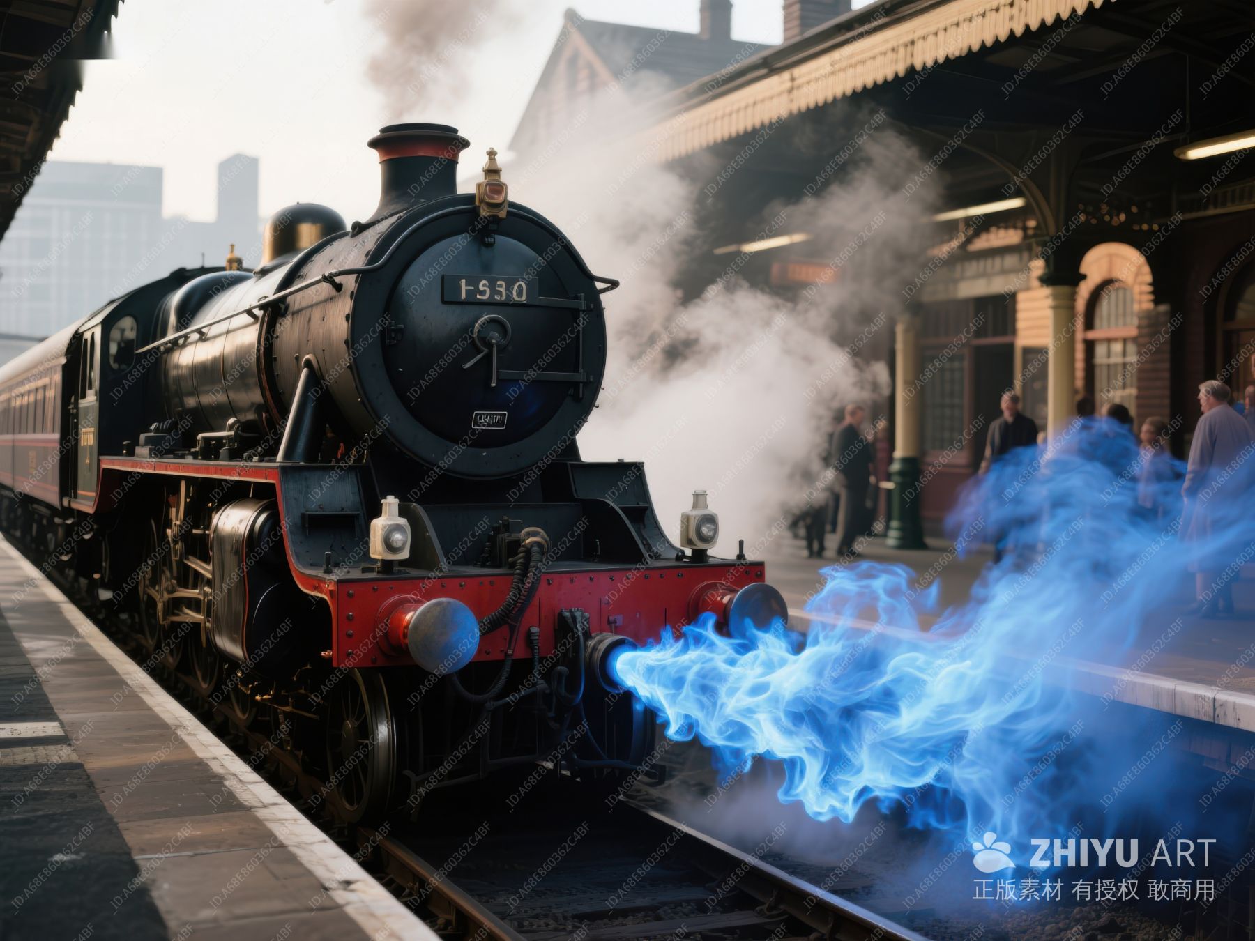 蒸汽火车喷出蓝色火焰 554