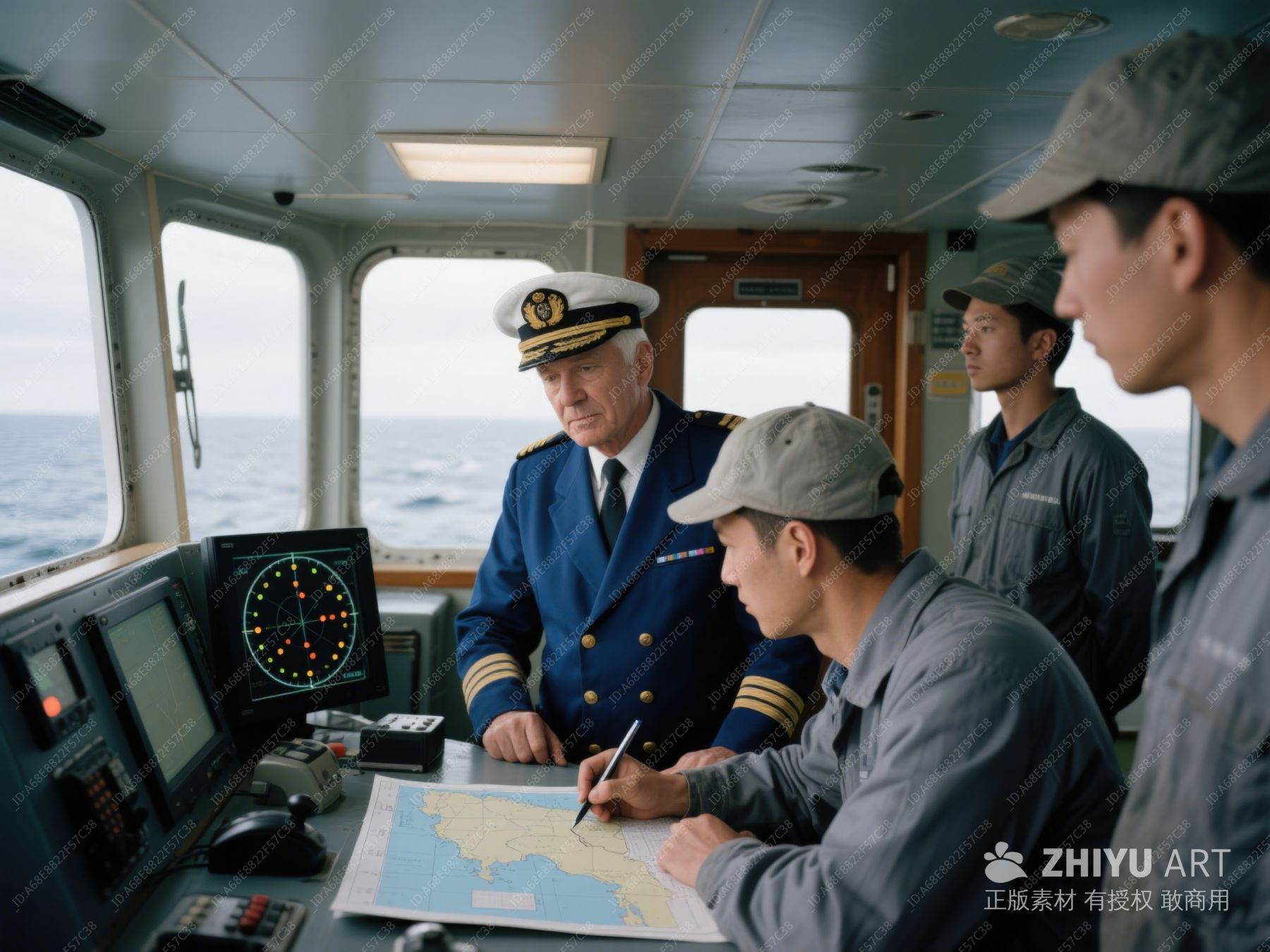 一位英国皇家海军上尉站在甲板上,背景是灰蒙蒙的雨天