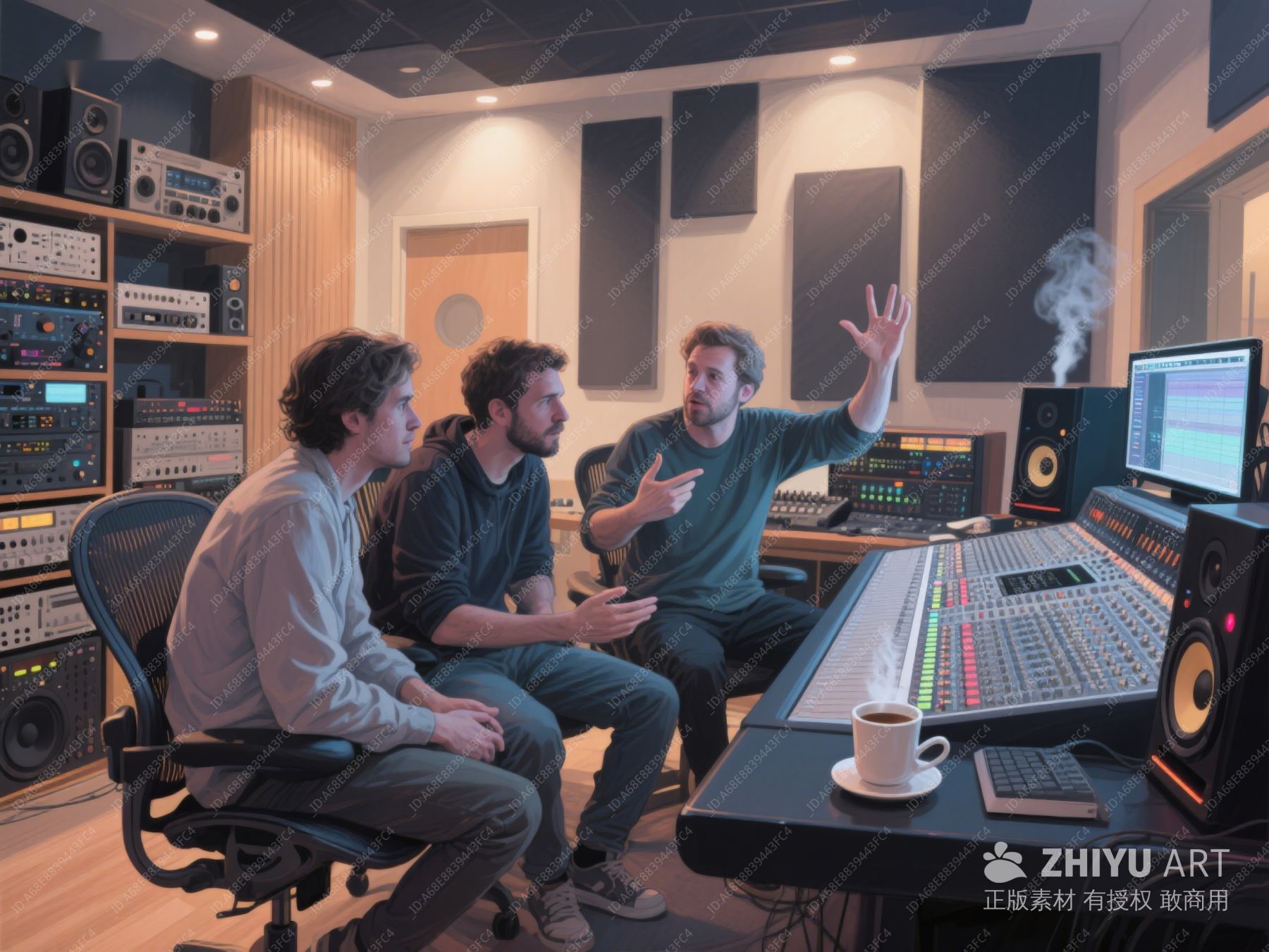 录音室中三人协作音乐制作 255