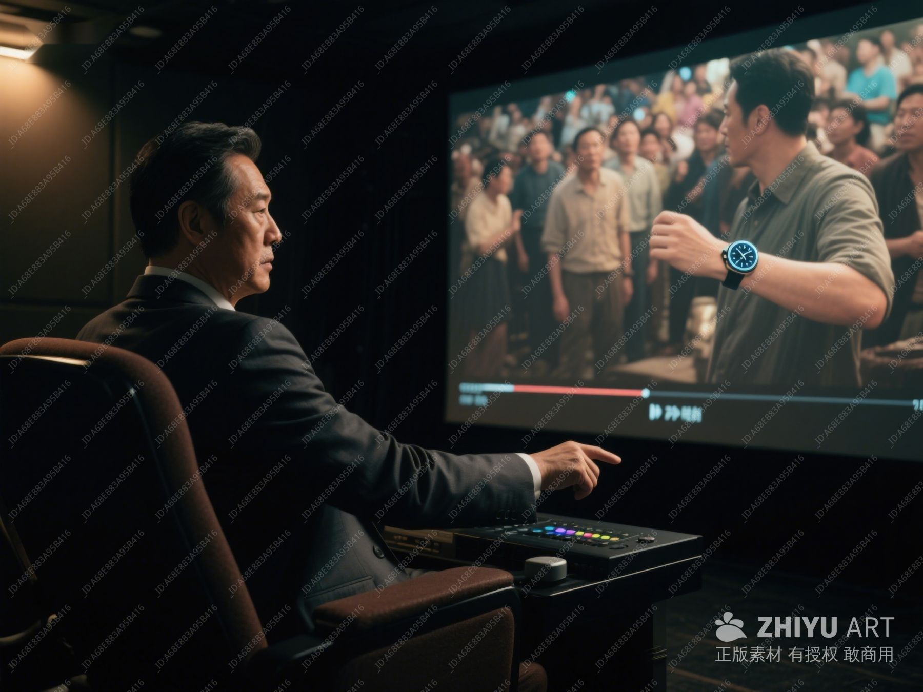 男子注视电视,老旧放映室氛围 277