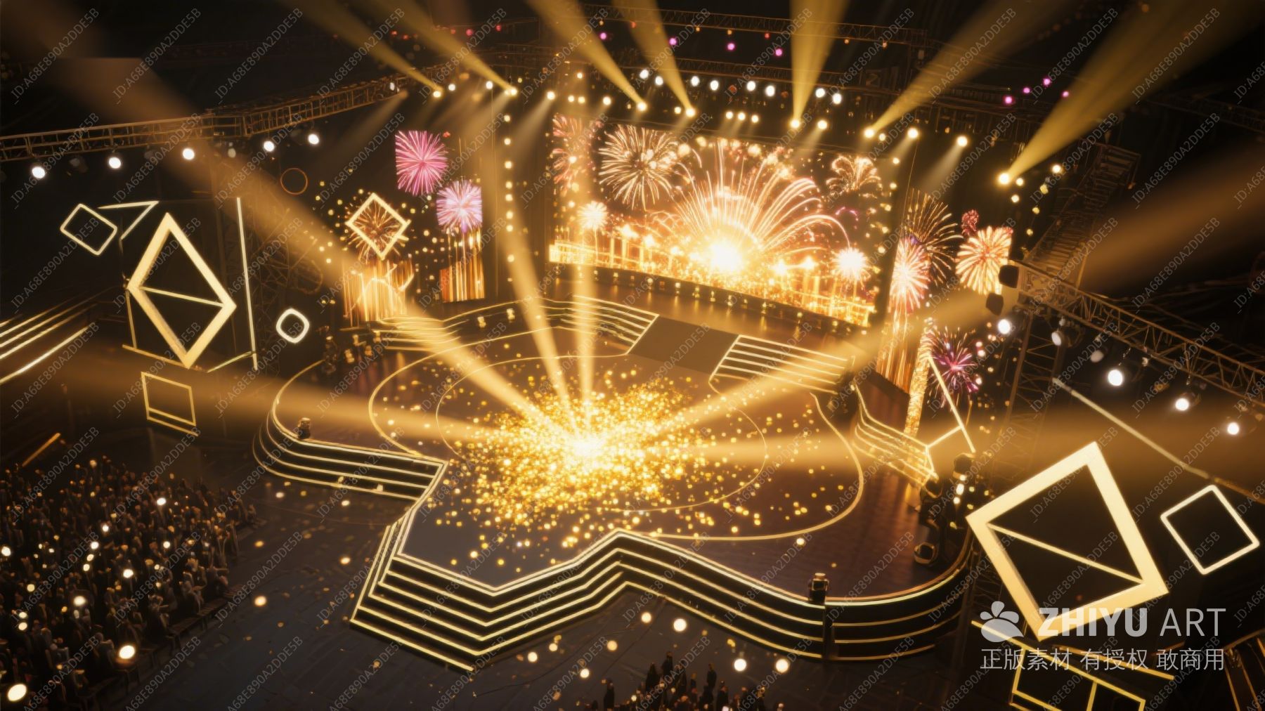 舞台烟花绽放,灯光璀璨夺目 777