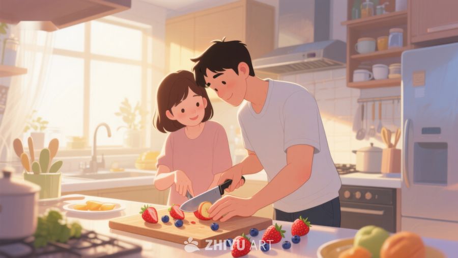 温馨厨房:父女共同切水果 389