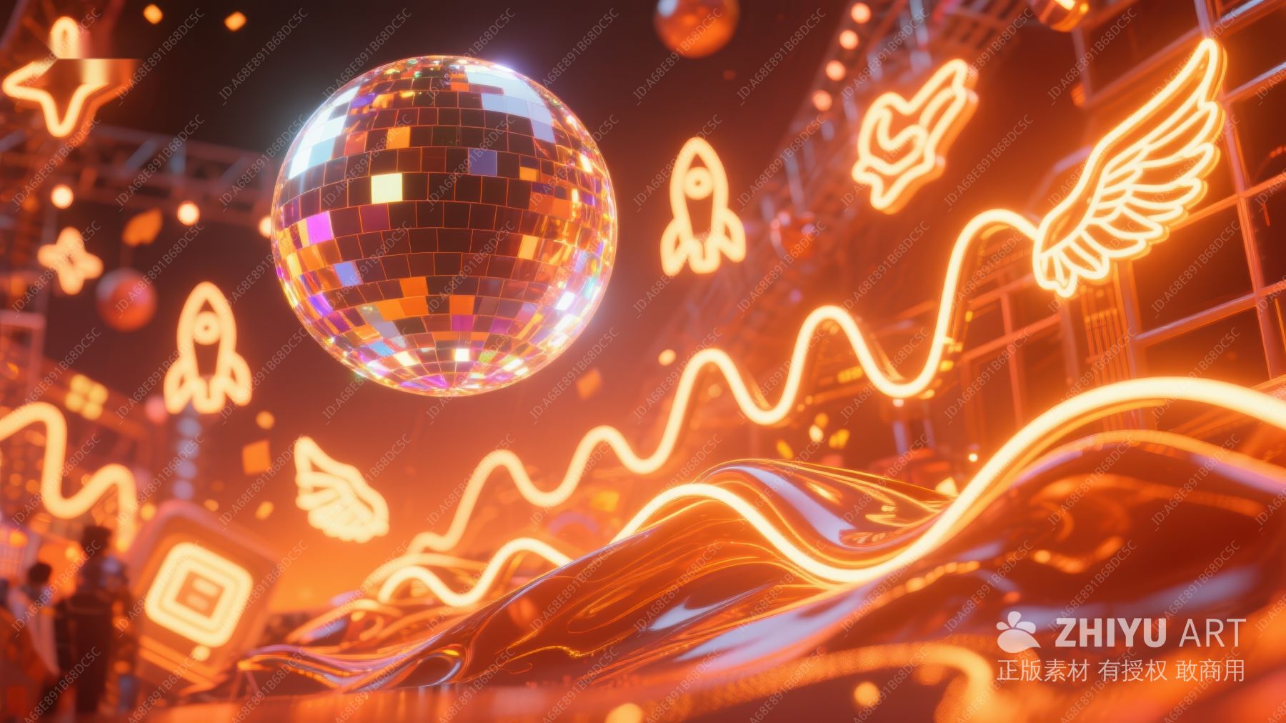 霓虹灯下的璀璨迪斯科球 319
