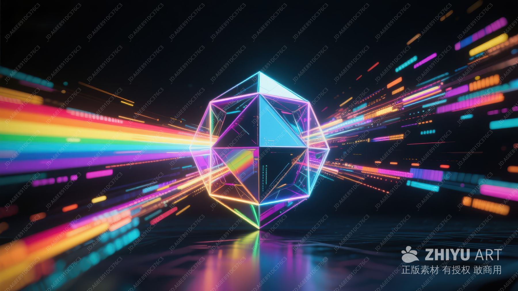 霓虹多面体与彩虹光线的未来科技场景 345