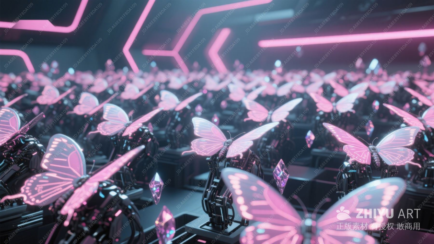 梦幻霓虹紫蝴蝶 未来科技感发光装饰元素 8