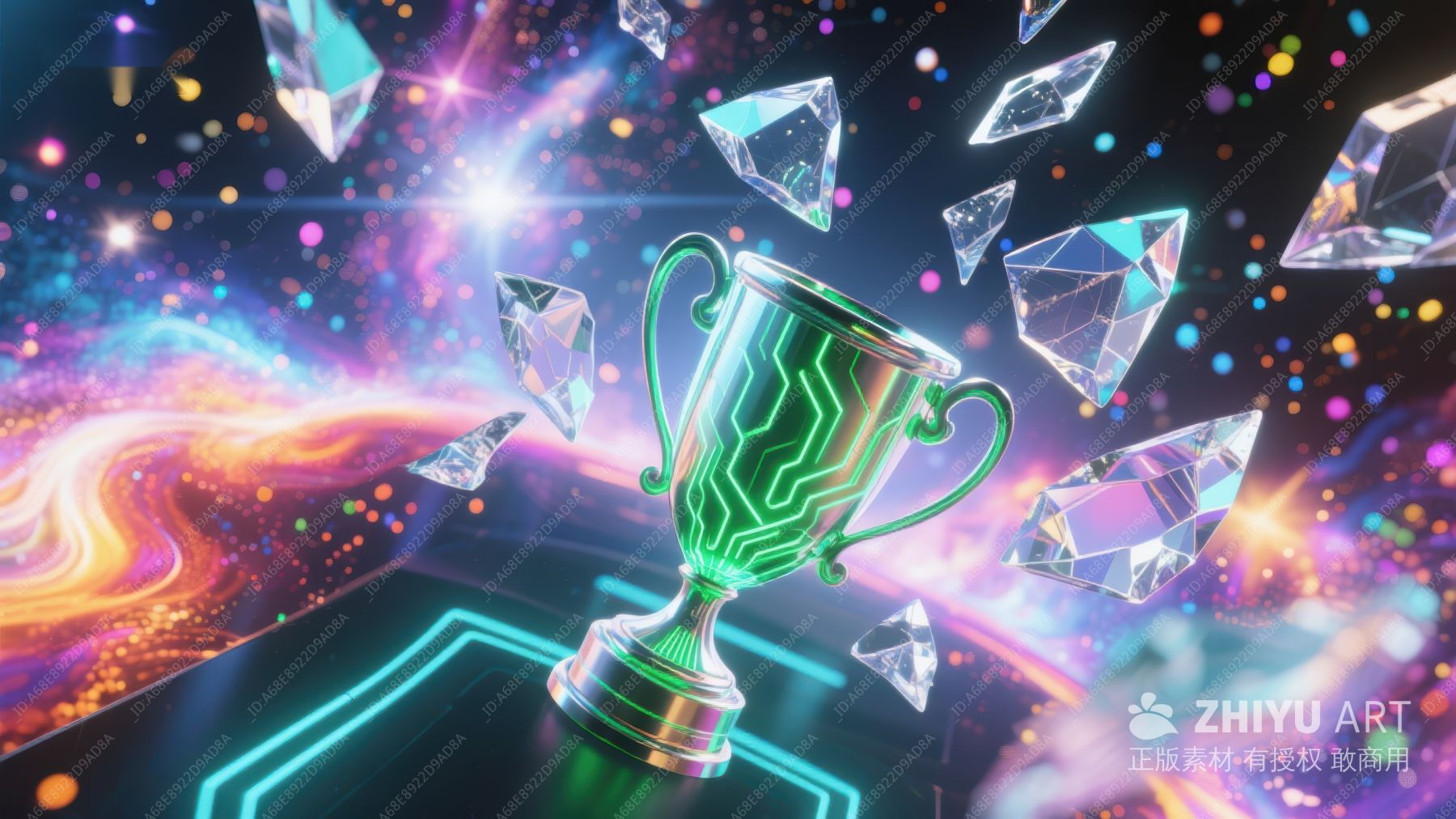 霓虹奖杯与钻石的炫彩场景 399