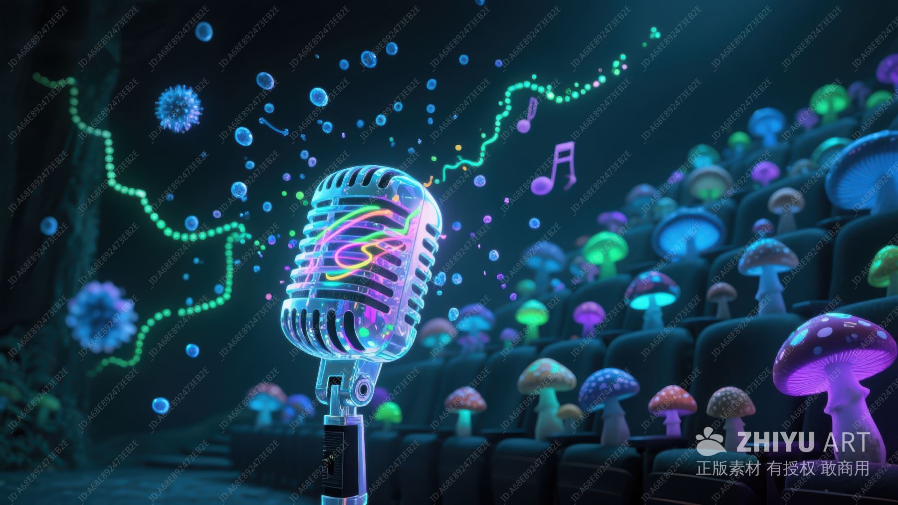 霓虹麦克风与荧光蘑菇的奇幻舞台 416