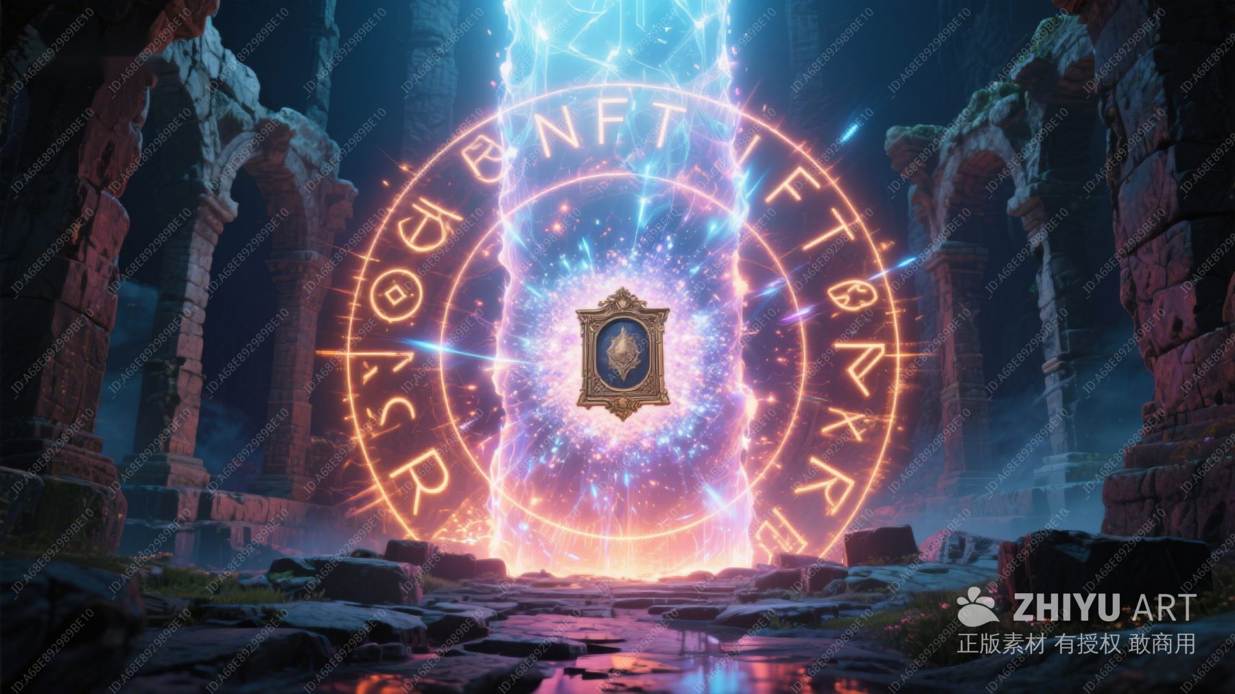 深蓝色和紫色调的背景中,一个金色的光环在图像中心辐