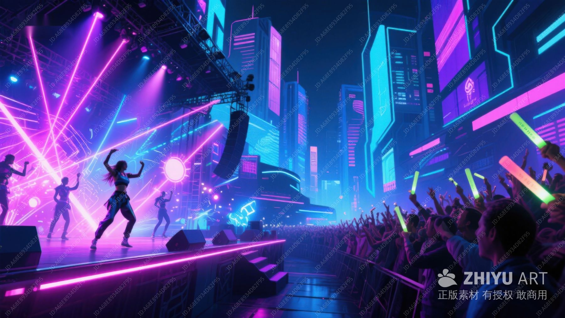 霓虹灯光下的未来派酒吧与舞台表演 298