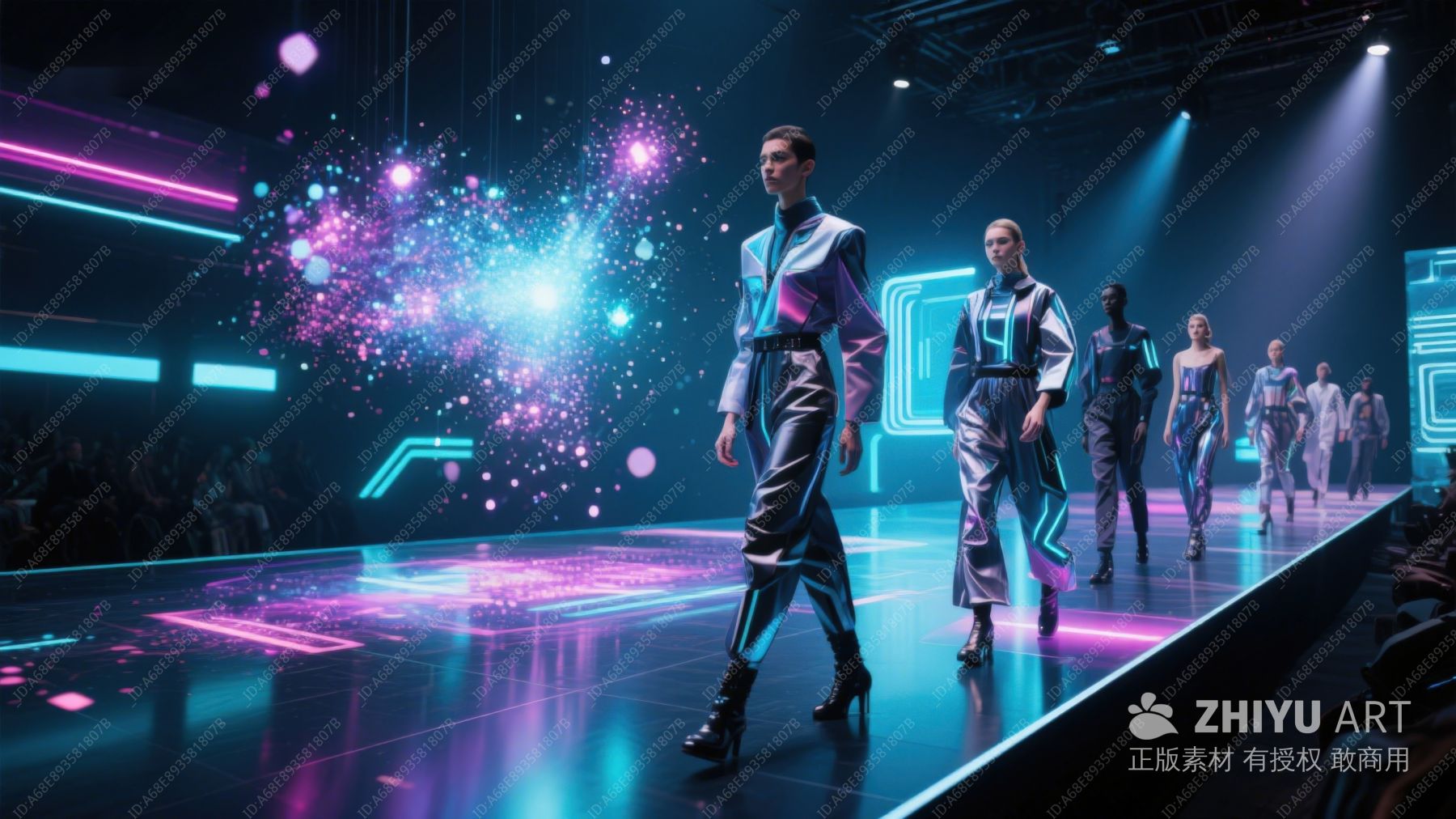 未来感时装秀场,模特身着炫彩服饰走秀 615