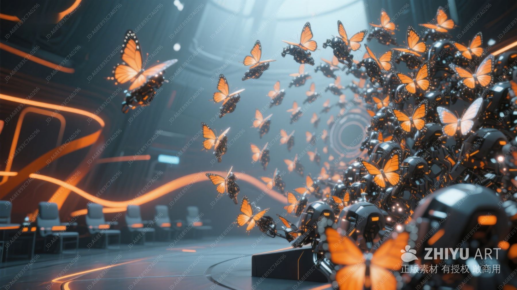 梦幻霓虹紫蝴蝶 未来科技感发光装饰元素 8
