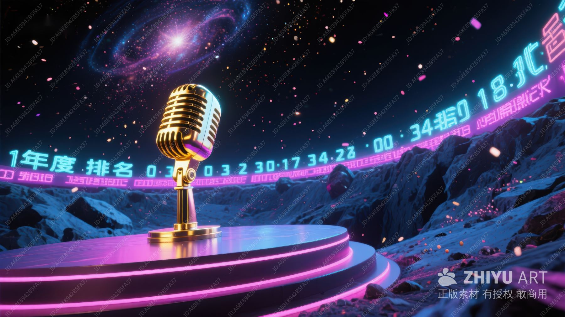 霓虹麦克风与蘑菇观众的奇幻舞台 412