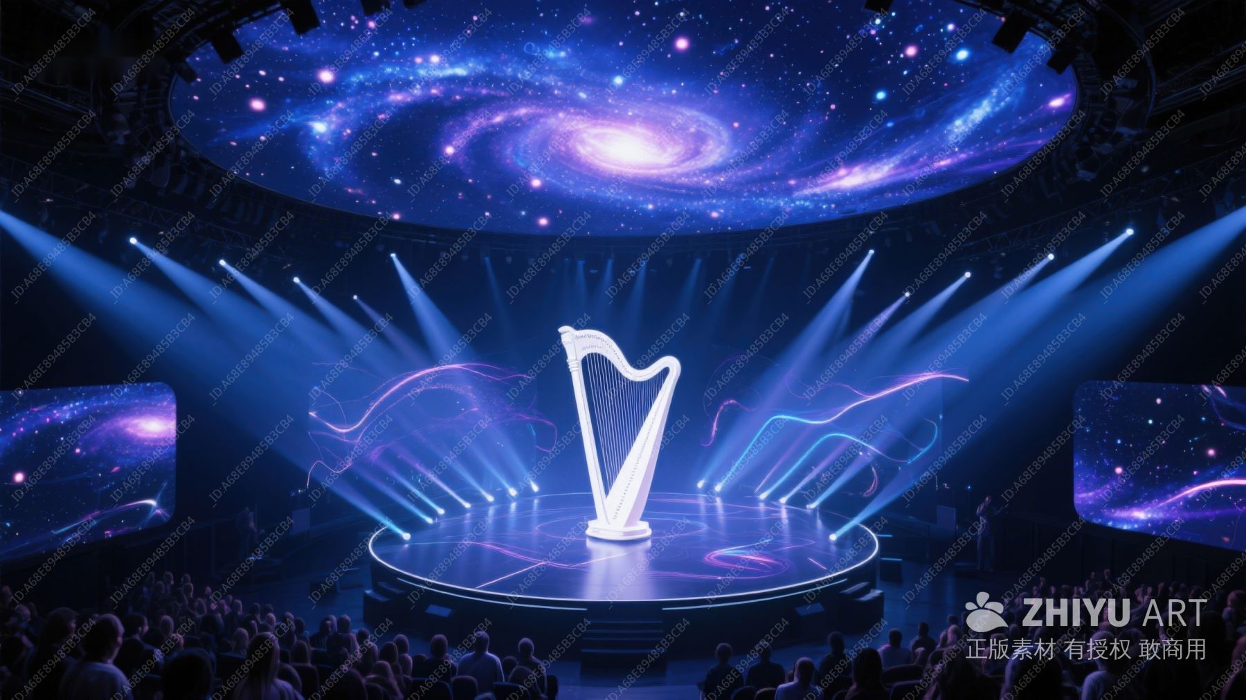 舞台上的发光竖琴与星系背景 770
