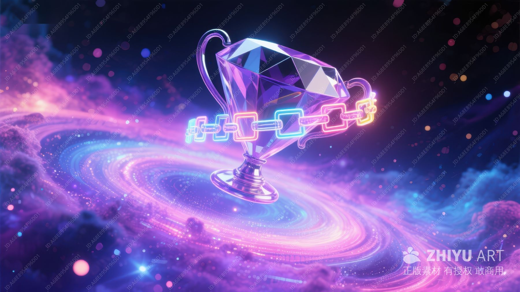 链环环绕的水晶奖杯与星系背景 234