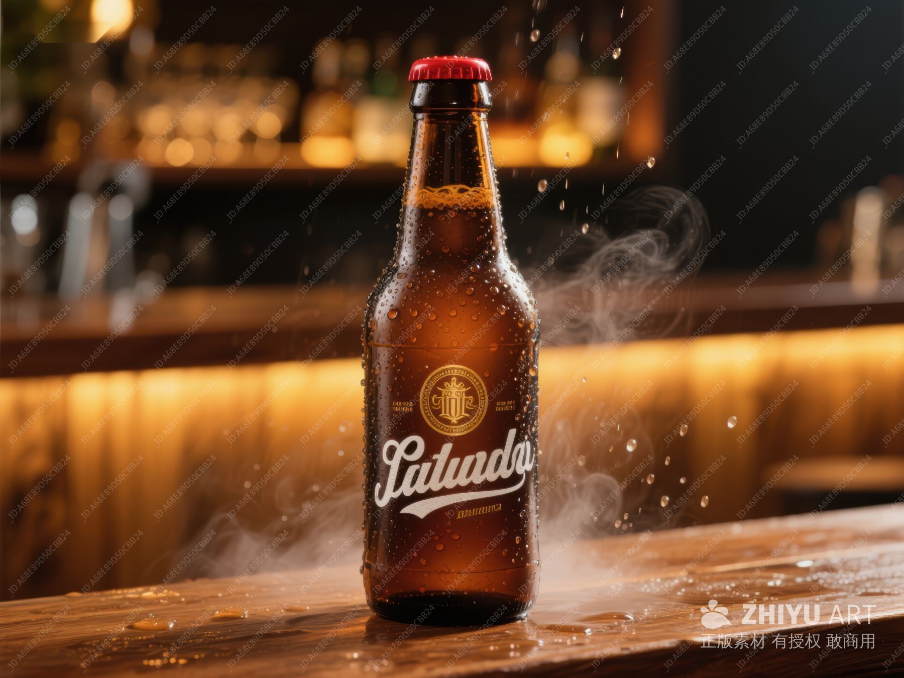 冰镇啤酒瓶置于木质吧台 14