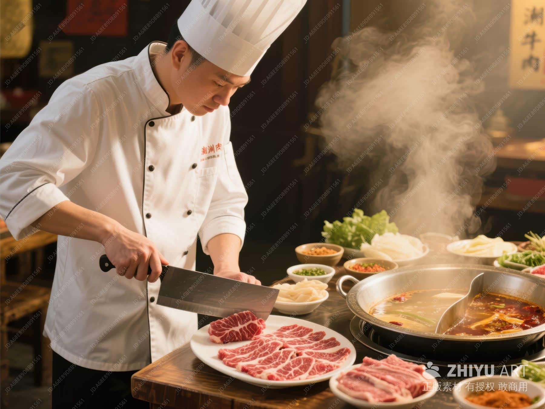 铜锅涮肉,热气腾腾的餐桌景象 734