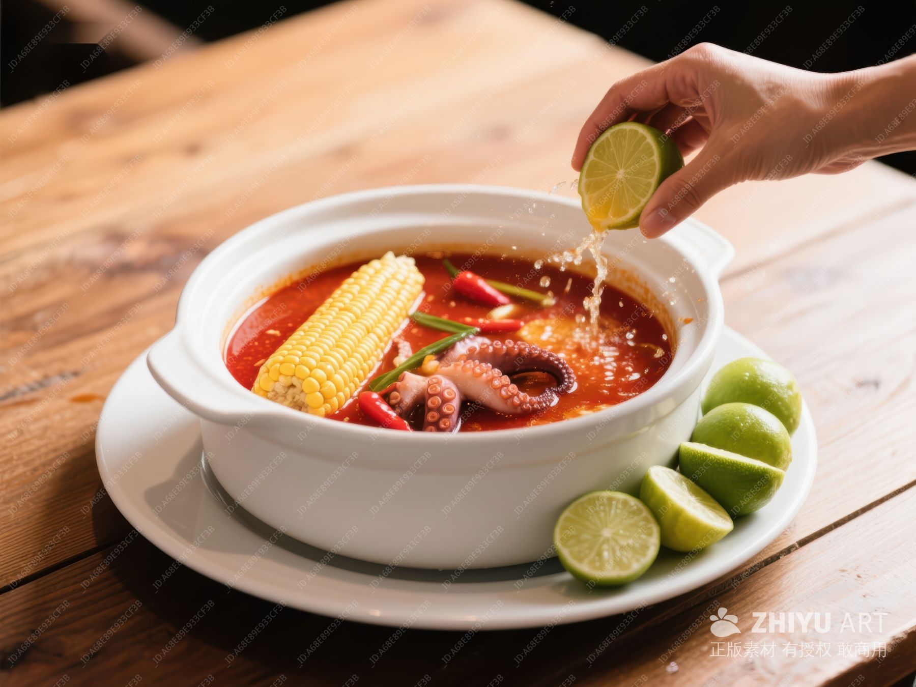 热气腾腾的海鲜汤配青柠和辣椒酱 505