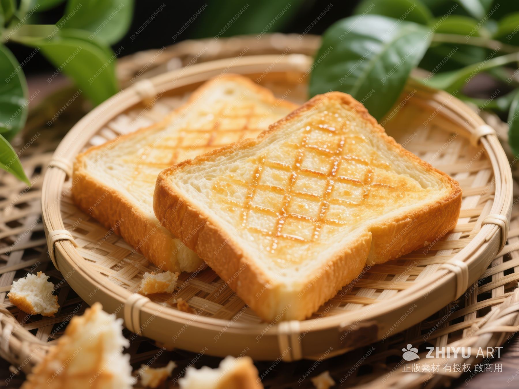 金黄烤面包片置于竹篮 256